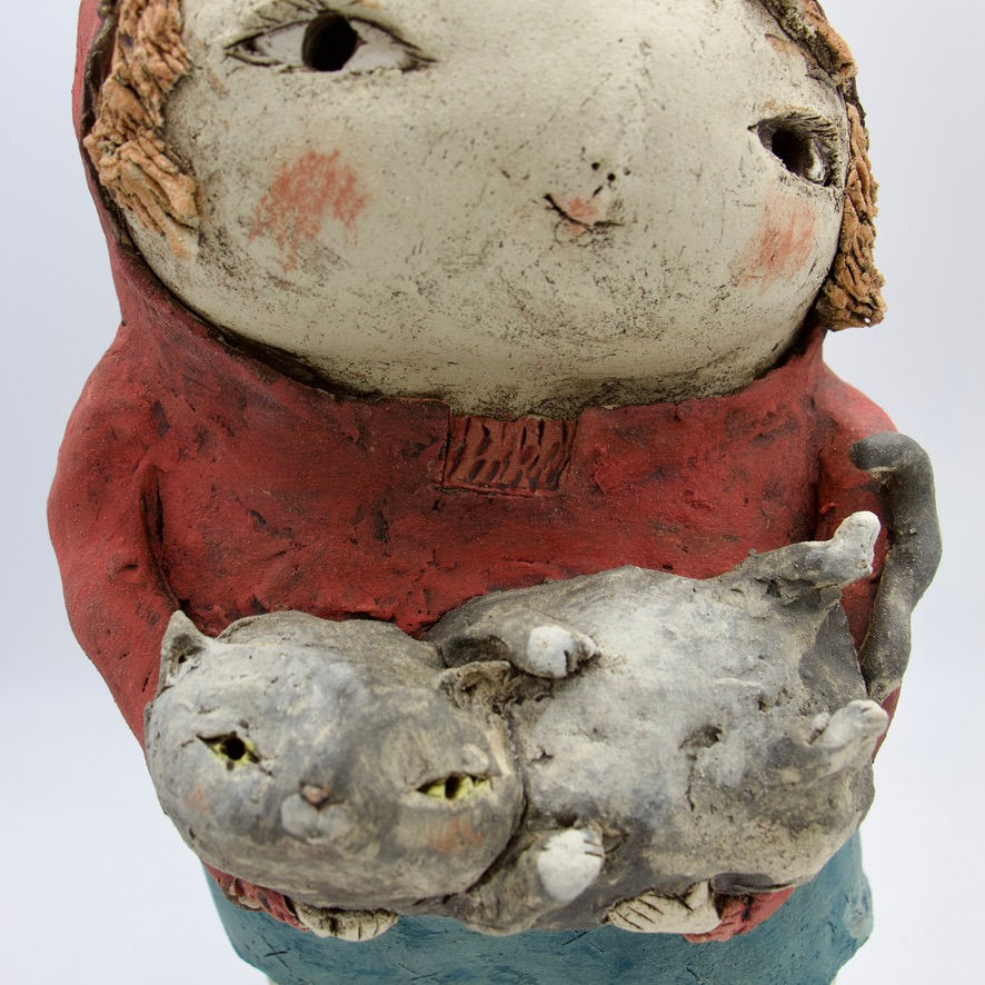 Au fil des années cette artiste a su créer un univers peuplé de poétiques bonshommes qui racontent à leur manière des instants de vie. Elle découvre l'argile très jeune. sa formation autodidacte lui fera aimer particulièrement le modelage aux colombins et les engobes.